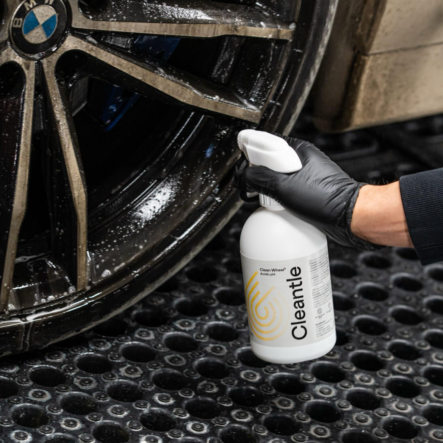 Clean Wheel² rim cleaner is a strong, acidic product for removing difficult dirt from rims.
