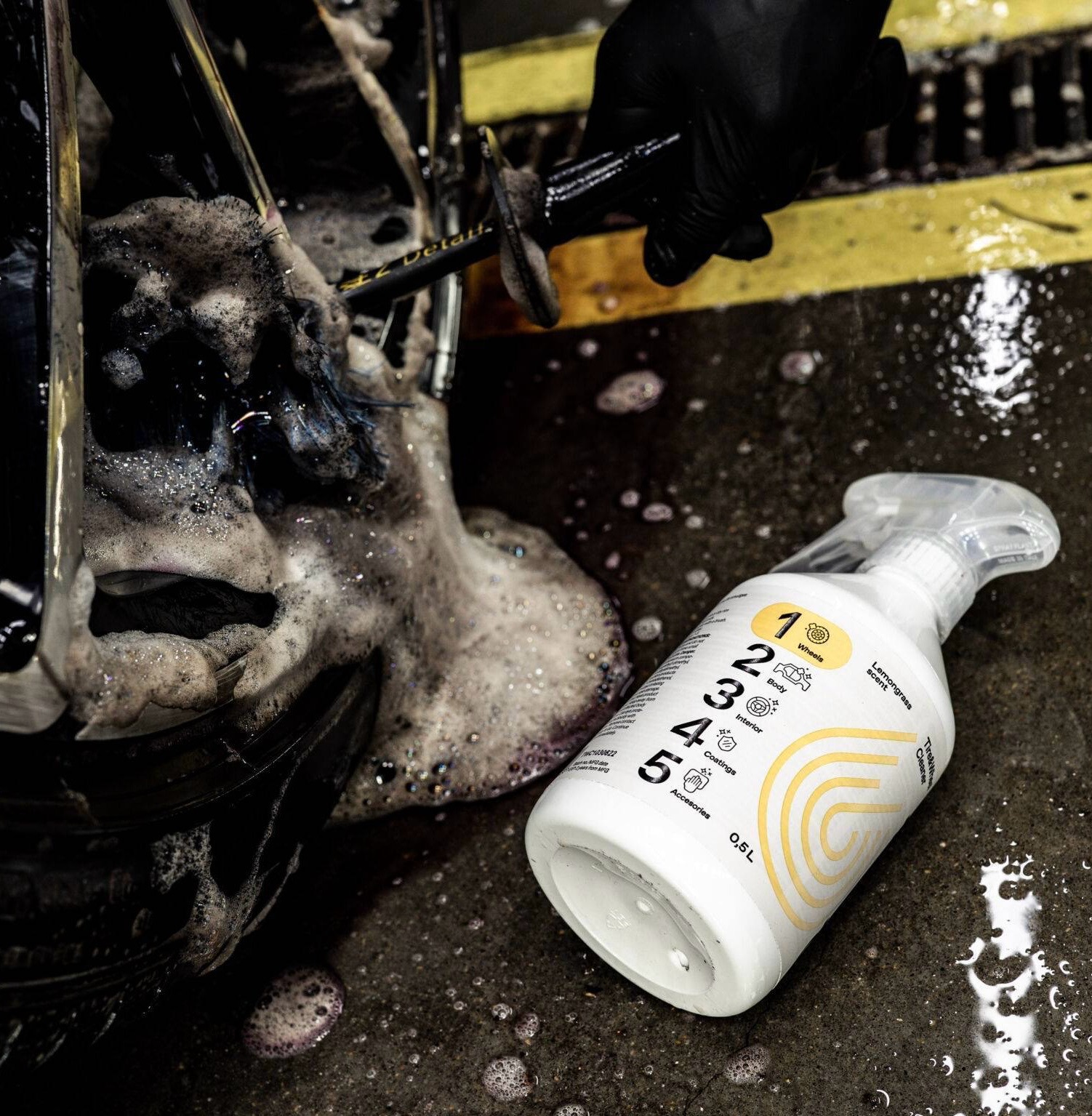 Tire & Wheel Cleaner is a product intended for cleaning surfaces such as tires, rubber elements, rubber mats, alloy wheels and steel rims. The innovative formula of the product effectively removes moderate dirt safely. This product is the perfect solution for regular maintenace.